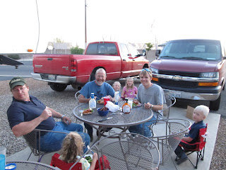 Guess where "on" was? Back to Fillmore thirty miles up the road and the mechanic shop that we visited (and played for) on the way down. It was like meeting old friends. We sadly left Dave and his motorhome in Fillmore for repairs. The young children were upset by the whole event; not seeing Mr. K. all the way home. He may have been relieved for a day or two of quiet!